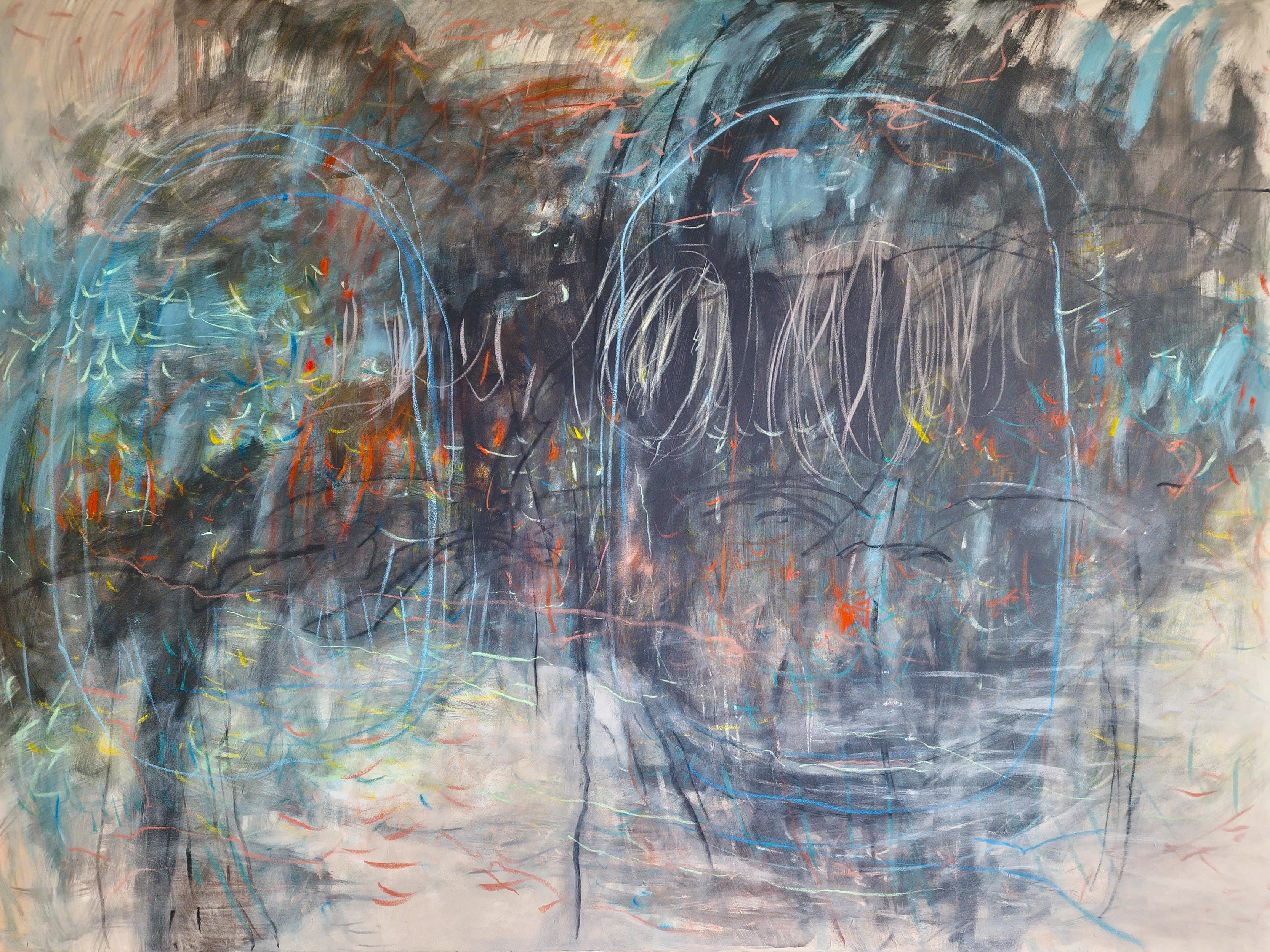 In this work I use an open composition and a free, almost sketch-like manner of painting — a gesture of immediate presence, a quick fixation of contact, both internal and external.